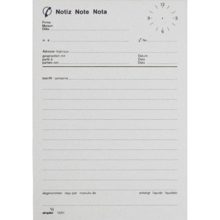 Bloc de téléphone SIMPLEX papier recyclé, 70 feuilles, collé sur fond en carton, perforation 8 cm, impression en 3 langues.