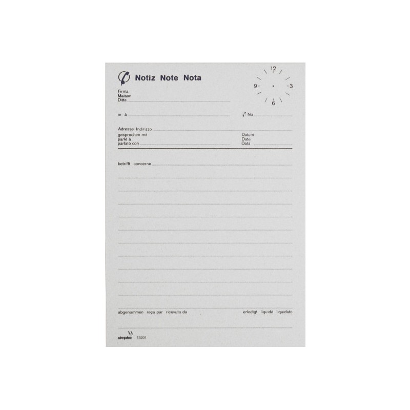 Bloc de téléphone SIMPLEX papier recyclé, 70 feuilles, collé sur fond en carton, perforation 8 cm, impression en 3 langues.