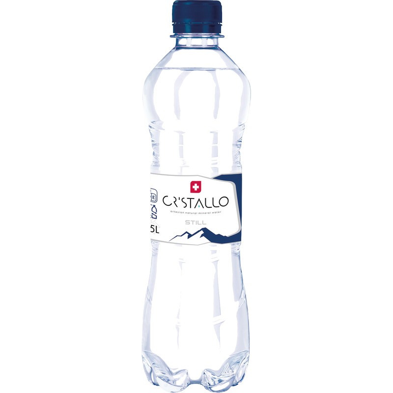 Eau minérale CRISTALLO® PET durabilité eco:plus: emballage respectueux de l'environnement. emballage de 12 x 5 dl