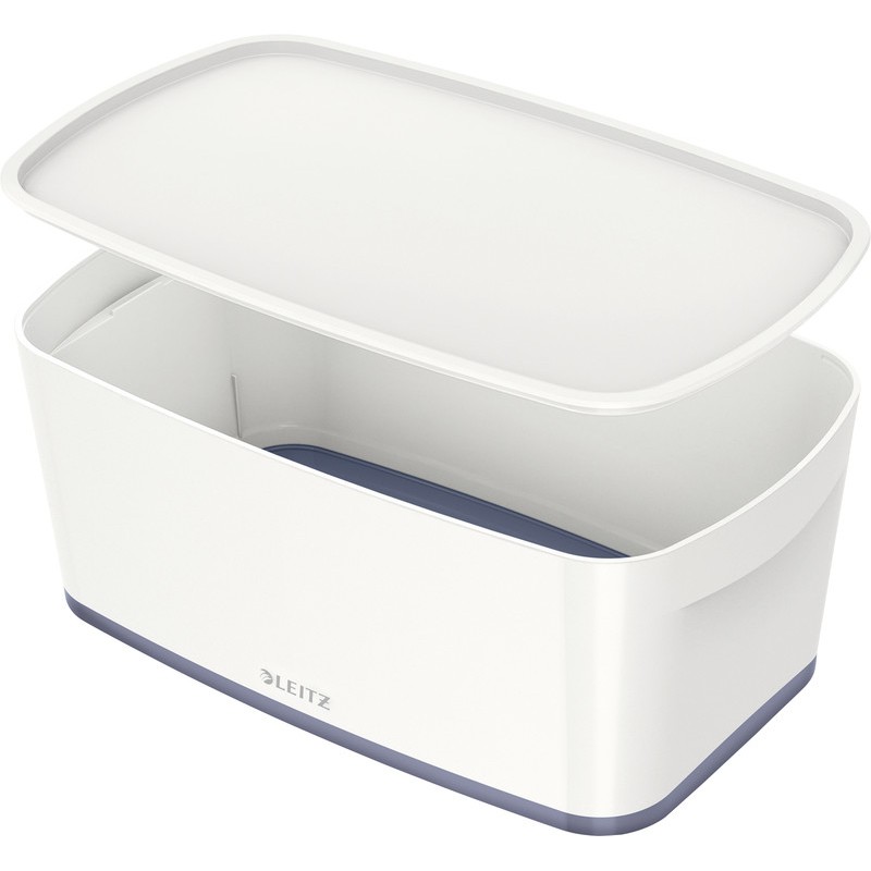 Boîte de rangement LEITZ® MyBox® en ABS robuste, résistant aux rayures et à l'eau, finition brillante, couverture emboîtable facile à ouvrir et à fermer, empilable les unes dans les autres, facile à nettoyer grâce aux coins arrondis, système de rangement MyBox® modulaire facile à combiner. petit volume 5 l. Dimensions: L 318 x H 128 x P 191 mm.