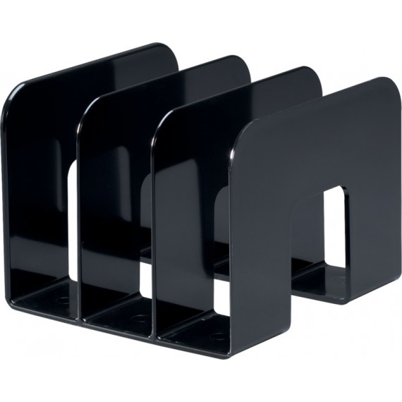 Porte-revues LEITZ® Click & Store en carton rigide laminé PP, avec porte-étiquette à l'avant et à l'arrière avec étiquettes interchangeables, livrée à plat, montage rapide par bouton pression, pour format A4. Dimensions extérieures: L 103 x H 330 x P 253 mm.