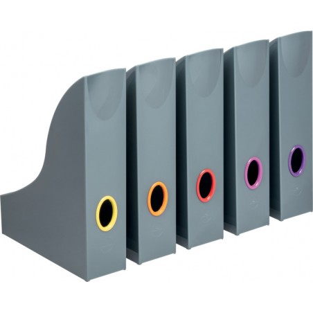 Porte-revues DURABLE Varicolor® en PS, gris, pour format A4, trous de prise aux couleurs assorties. Dimensions extérieures: L 73 x H 306 x P 241 mm. Set de 5 pièces. Durabilité eco:plus: recyclable.