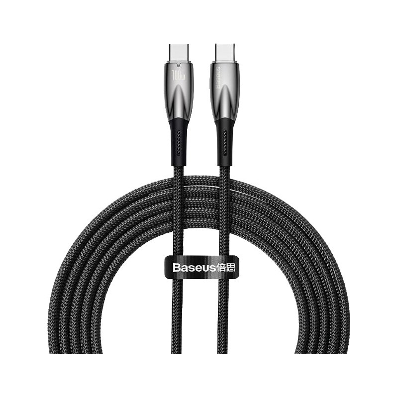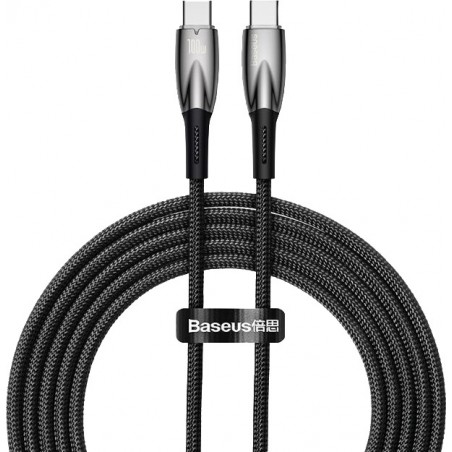 Câble USB C-C BASEUS Glimmer Series pour connecter un périphérique USB équipé d'un port USB-C, taux de transfert jusqu'à 480 Mbits/sec., câble noir, longueur 2 m.