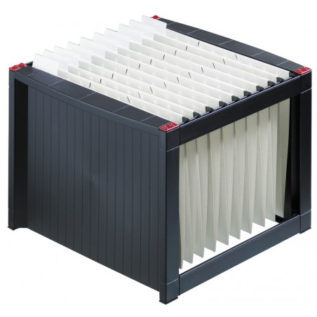Conteneur pour dossiers suspendus HELIT the rack en PS, pour dossiers suspendus A4 d'une hauteur max. de 26 cm, pour env. 40 dossiers suspendus, cadre facile à assembler, empilable. Dimensions: L 360 x H 272 x P 380 mm. Durabilité eco:plus: construit pour être démontable, durée de vie du produit prolongée, recyclable, teneur en déchets recyclés après utilisation max. 100%, réduction des déchets, emballage respectueux de l'environnement.