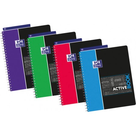Bloc collège OXFORD Projectbook couverture en PP, papier satiné extra-blanc Optik Paper® 90 g/m2, 80 feuilles, avec microperforation, coins arrondis, réglure arrêtée avec en-tête et marge à gauche pour la prise de notes, 3 intercalaires en PP repositionnables pour subdiviser le cahier en 4 parties, 4 sections identifiées par des bordures de couleurs différentes, poche pour les documents, l'application Scribzee scanne les notes manuscrites et les convertit en un fichier PDF, exportation par e-mail, Dropbox, Evernote ou OneDrive, correction automatique de la perspective et de l'arrière-plan, 4 coins imprimés aux coins des pages pour la numérisation des pages, disponible pour Android et iOS, reliure à spirale, 4 trous, format A4+, couleurs assorties, jaune, violet, bleu et rouge. quadrillé 5 mm