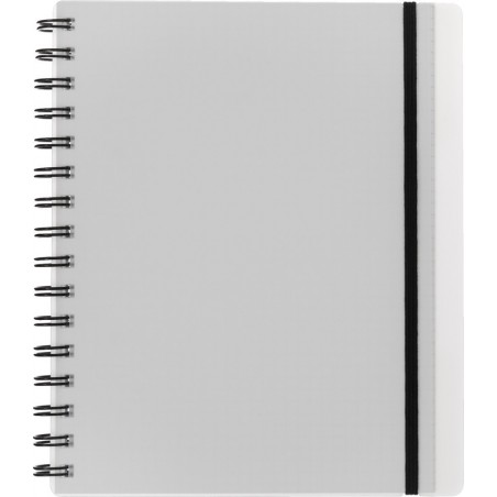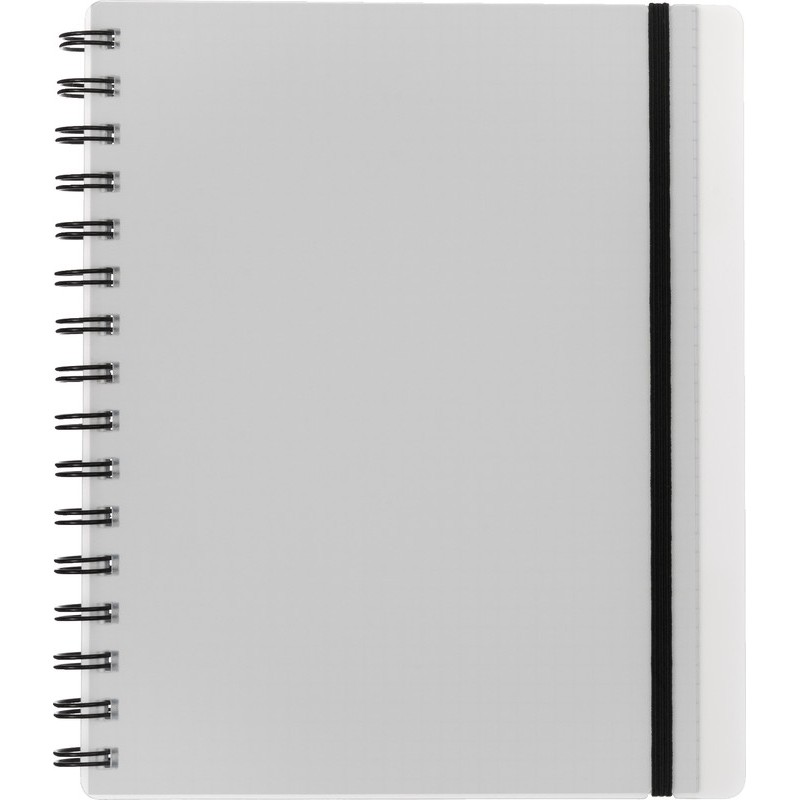 Bloc collège KOLMA® easy couverture en matériau KolmaFlex semi-transparent, papier blanc, 70 g/m2, quadrillées 5 mm, 200 pages, perforées, reliure à double spirale, fermeture par élastique, couvercle antérieur avec poche pour le rangement de feuilles volantes. Durabilité eco:plus: construit pour être démontable, durée de vie du produit prolongée, recyclable, teneur en déchets recyclés après utilisation max. 100%. A5 avec 2 trous.