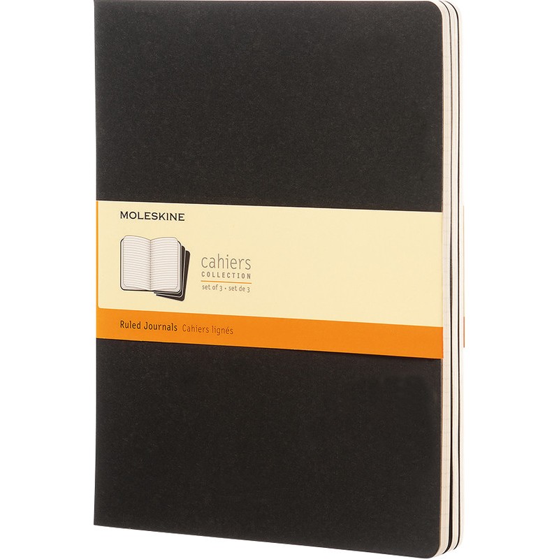 Cahiers MOLESKINE® Cahiers Collection coins arrondis, papier sans acide, 70 g/m2, couture visible au dos, grande pochette intérieure pour notes volantes. Emballage de 3 pièces. Durabilité eco:plus: teneur en déchets recyclés après utilisation max. 50%. Certification: FSC. Xtra Large 190 x 250 mm, couverture en carton, 120 pages 16 dernières pages détachables.