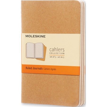 Cahiers MOLESKINE® Cahiers Collection coins arrondis, papier sans acide, 70 g/m2, couture visible au dos, grande pochette intérieure pour notes volantes. Emballage de 3 pièces. Durabilité eco:plus: teneur en déchets recyclés après utilisation max. 50%. Certification: FSC. Pocket 90 x 140 mm, couverture en carton, 64 pages 16 dernières pages détachables.