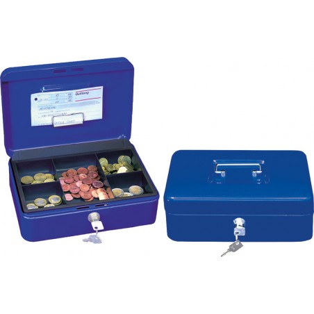 WEDO® Geldkassette mit Notenklammer aus pulverbeschichtetem, nahtlosgezogenem Stahl, versenkbarer Tragegriff, Münzeinsatz aus Kunststoff, im Deckel angebrachte Geldscheinklammer, Sicherheits-Zylinderschloss mit zwei Schlüsseln. grandeur 3, 5 casiers à monnaie dimensions: L 250 x H 90 x P 180 mm.