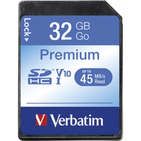 VERBATIM(TM) SDHC Card Class 10 Premium carte mémoire pour appareils photo numériques et caméscopes, lecteurs MP3, smartphones, tablettes, etc., vitesse de lecture jusqu'à 45 Mo/sec., vitesse d'écriture jusqu'à 10 Mo/sec. Durabilité eco:plus: construit pour être démontable, recyclable, composant recyclé, teneur en déchets recyclés avant utilisation max. 100%, teneur en déchets recyclés après utilisation max. 100%.
