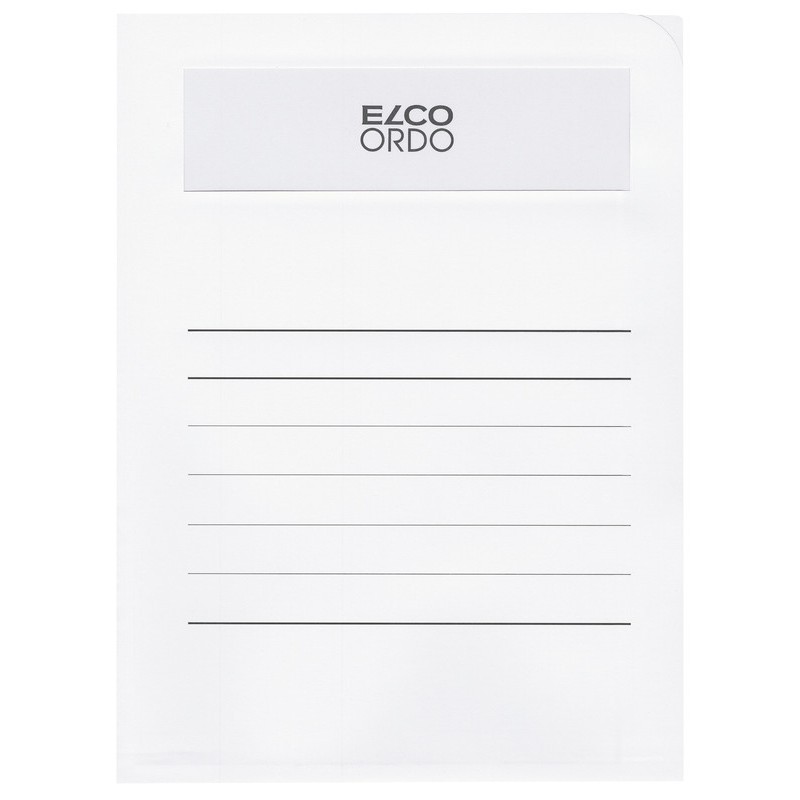 Chemises de classement ELCO Ordo Volumino en papier, 120 g/m2, format de la pochette 231 x 313 mm, soufflets, avec préimpression, fenêtre transparente format 180 x 50 mm, pour format A4. Durabilité eco:plus: recyclable. Certification: FSC. boîte de 50 pièces