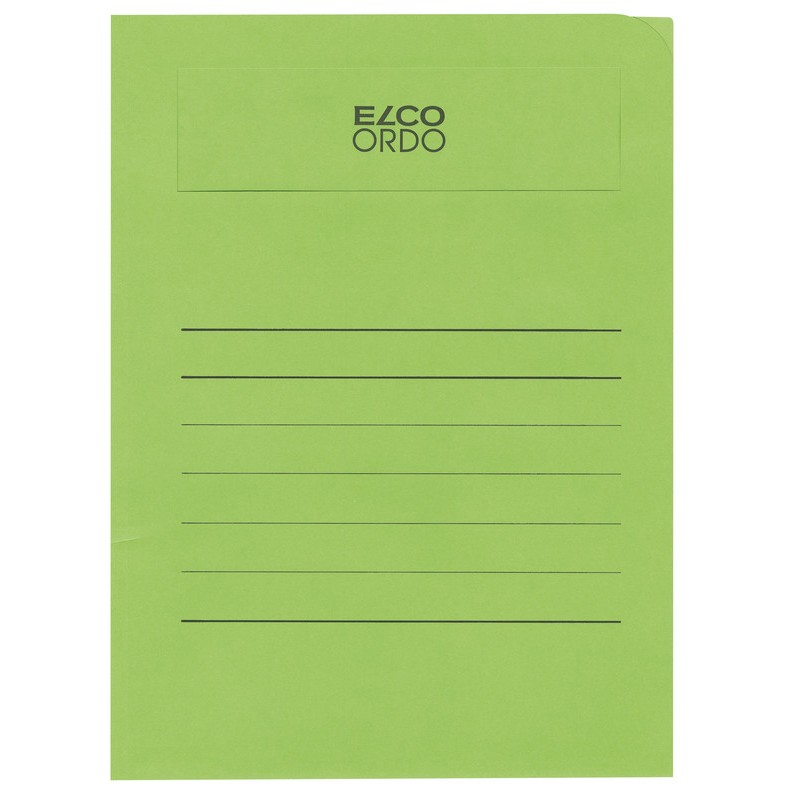 Chemises de classement ELCO Ordo Volumino en papier, 120 g/m2, format de la pochette 231 x 313 mm, soufflets, avec préimpression, fenêtre transparente format 180 x 50 mm, pour format A4. Durabilité eco:plus: recyclable. Certification: FSC. boîte de 50 pièces