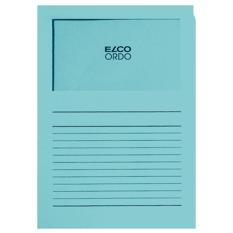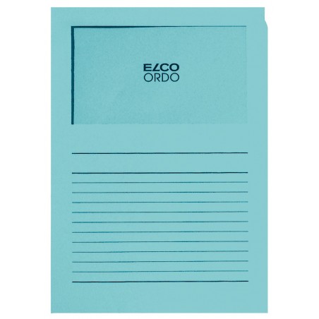 Chemises de classement ELCO Ordo classico en papier, 120 g/m2, format de la pochette 220 x 310 mm, fenêtre transparente format 180 x 100 mm, pour format A4. Durabilité eco:plus: recyclable, composant recyclé. Certification: FSC. avec préimpression boîte de 100 pièces.