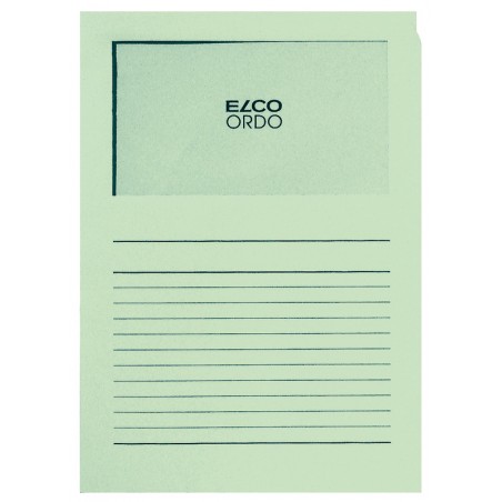 Chemises de classement ELCO Ordo classico en papier, 120 g/m2, format de la pochette 220 x 310 mm, fenêtre transparente format 180 x 100 mm, pour format A4. Durabilité eco:plus: recyclable, composant recyclé. Certification: FSC. avec préimpression boîte de 100 pièces.