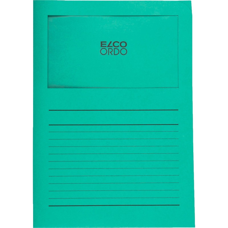 Chemises de classement ELCO Ordo classico en papier, 120 g/m2, format de la pochette 220 x 310 mm, fenêtre transparente format 180 x 100 mm, pour format A4. Durabilité eco:plus: recyclable, composant recyclé. Certification: FSC. avec préimpression boîte de 100 pièces.
