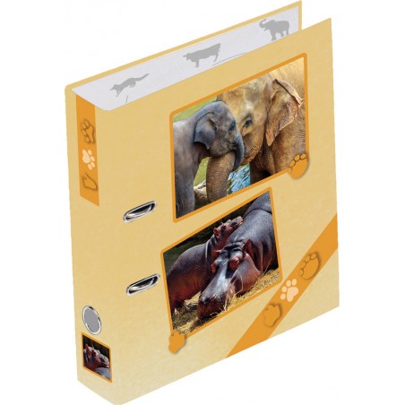 Classeur PAGNA® traces d'animaux en carton, avec laminage anti-salissure, avec oeillets et trou de prise, mécanisme à levier, largeur du dos 7,5 cm, mécanisme à 2 anneaux, Ø 60 mm, pour format A4.