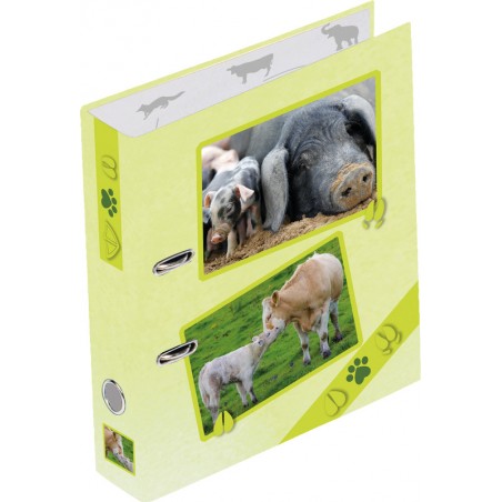 Classeur PAGNA® traces d'animaux en carton, avec laminage anti-salissure, avec oeillets et trou de prise, mécanisme à levier, largeur du dos 7,5 cm, mécanisme à 2 anneaux, Ø 60 mm, pour format A4.