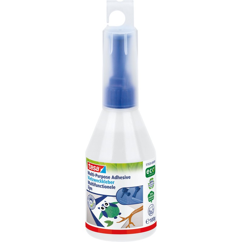 Colle universelle TESA® ecoLogo® liquide, colle les surfaces larges et les points avec précision, lavable à l'eau froide, sans odeur, transparente et incolore, permet de coller entre eux papier, photos, feutre, liège, cuir, bois et d'assembler ces collages avec le métal, porcelaine, céramique, verre et matières plastiques, sans solvant. Durabilité eco:plus: durée de vie du produit prolongée, recyclable, composant recyclé.