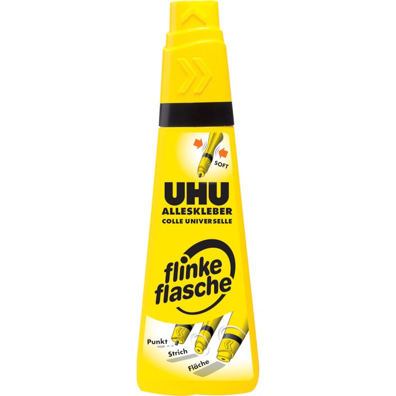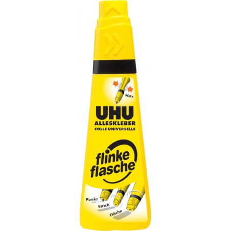Colle multi-matériaux UHU® flinke flasche collage sur mesure grâce à un applicateur 3 positions: précis, fin ou large, lavable à 60°C.