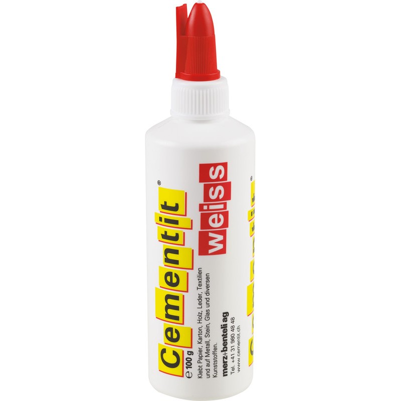 CEMENTIT® blanche colle papier, carton, bois, cuir, textiles entre eux et sur métal, pierre et verre, sans solvants. Durabilité eco:plus: construit pour être démontable, recyclable, teneur en déchets recyclés après utilisation max. 100%.