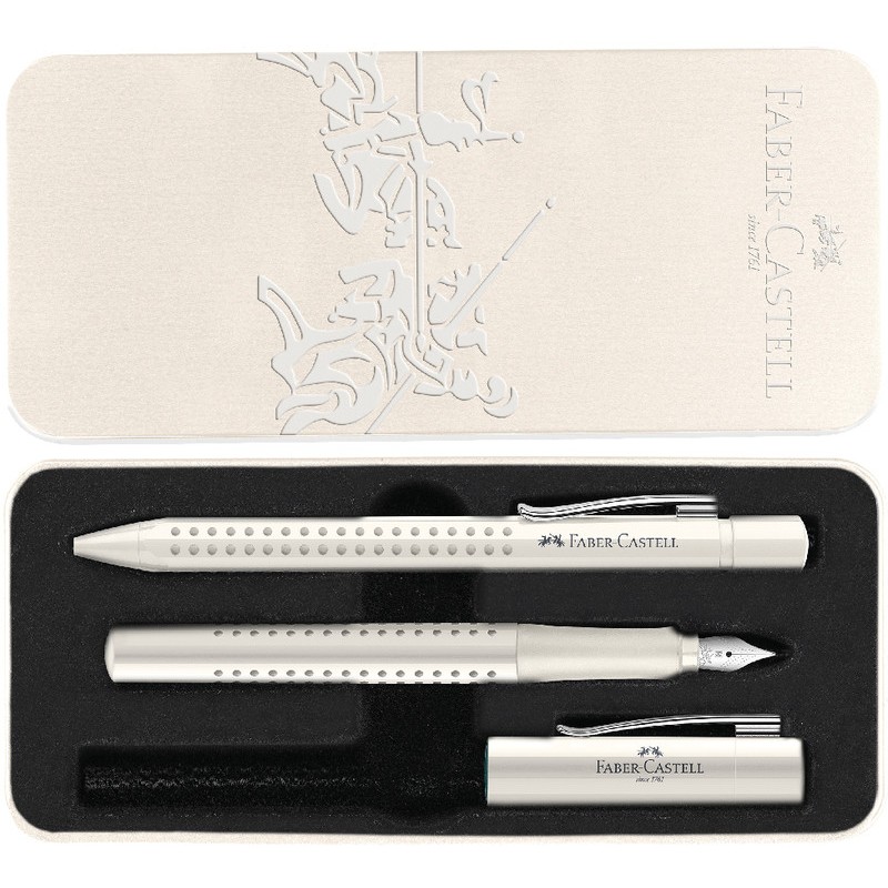 Set d'instruments d'écriture FABER-CASTELL Grip 2010 Harmony dans étui en métal. Set composé stylo à bille Grip 2010 M, infalsifiable, couleur de l'encre bleue, rechargeable et stylo plume Grip 2010 M.