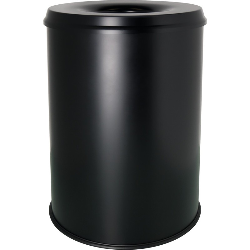 Corbeille à papier de sécurité HELIT the guardian en acier, étouffoir évitant toute propagation des flammes, le plus haut niveau de sécurité en matière anti feu, résistante à la corrosion, autoextinguible, résistante au feu, embase joint caoutchouc. Durabilité eco:plus: durée de vie du produit prolongée, recyclable, teneur en déchets recyclés après utilisation max. 100%, réduction des déchets. Certification: TÜV/GS. capacité 15 l, H 335 mm, Ø 260 mm