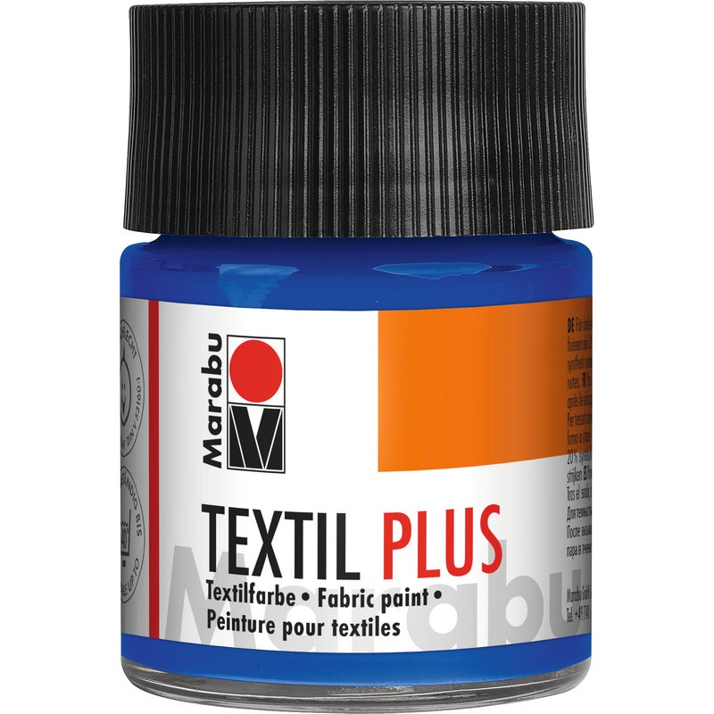 Peinture pour textiles MARABU Textil plus peinture pour tissus entièrement couvrante et à base d'eau, pour fixer l encre repasser sans vapeur, lavable à 40°C, ces coloris intenses ont un excellent pouvoir couvrant, une bonne stabilité à la lumière, tous les coloris sont miscibles entre eux et diluables à l'eau, applicable sur textiles foncés, mais également sur les textiles clairs sans apprêt en coton, lin, jute, tissus mélangés avec maximum 20% de fibres synthétiques. contenu 50 ml