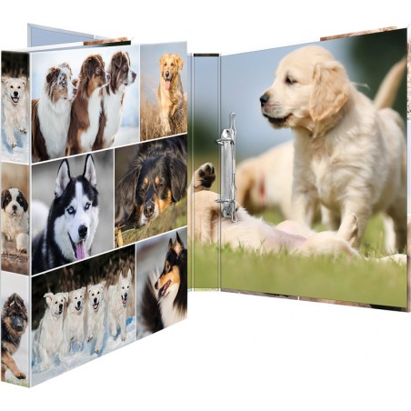 Couverture à anneaux HERMA Animals en carton solide, imprimé à l'intérieur et à l'extérieur sur toute la surface, dos fraisé pour faciliter l'ouverture et la fermeture, position plane à 100%, largeur du dos 3,5 cm, pour contenu A4 avec pochettes transparentes et répertoire extra-large. mécanisme à 2 anneaux