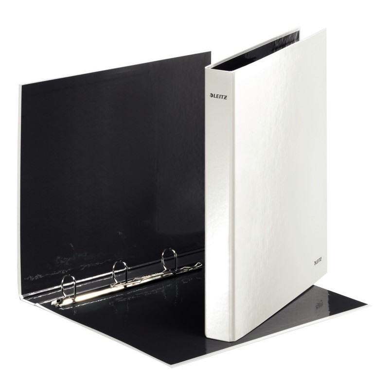 Couverture à anneaux LEITZ® WOW classeur à anneaux attractif décliné dans des couleurs WOW éclatantes avec effet bicolore, en carton gris laminé PP à l'extérieur et à l'intérieur, mécanisme combi à 2 anneaux en D, Ø 25 mm, capacité: env. 230 feuilles (80 g/m2), pour format A4. Durabilité eco:plus: Certification: FSC.