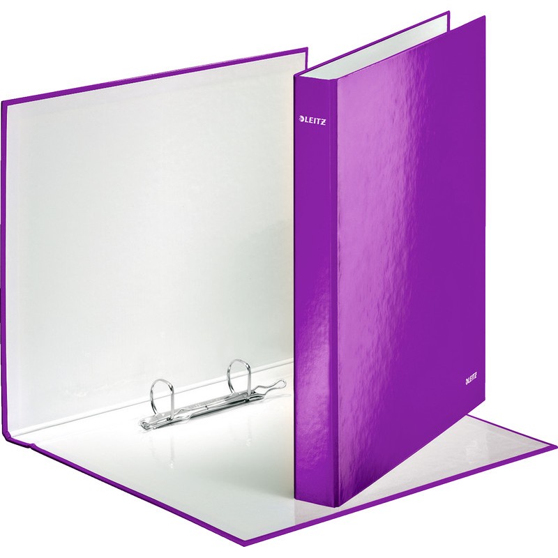 Couverture à anneaux LEITZ® WOW classeur à anneaux attractif décliné dans des couleurs WOW éclatantes avec effet bicolore, en carton gris laminé PP à l'extérieur et à l'intérieur, mécanisme combi à 2 anneaux en D, Ø 25 mm, capacité: env. 230 feuilles (80 g/m2), pour format A4. Durabilité eco:plus: Certification: FSC.
