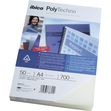Couvertures GBC® PolyTechno feuilles transparentes mates en PP résistant de couleur, surface cannelée, format A4. Emballage de 50 pièces.