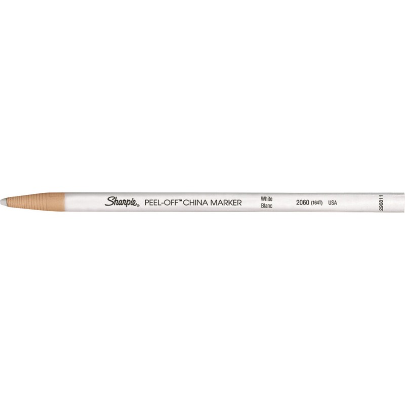 China Marker SHARPIE® crayon gras, pour écrire sur la porcelaine, le verre, le métal ou le plastique, entouré de papier déroulable, soluble à l'eau, effaçable avec un chiffon humide, résistant à la lumière, largeur de trait 2 mm.