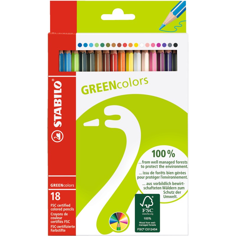 Crayons de couleur STABILO® GREENcolors corps hexagonal, mine de haute qualité Ø 3 mm. Durabilité eco:plus: emballage respectueux de l'environnement. Certification: FSC.