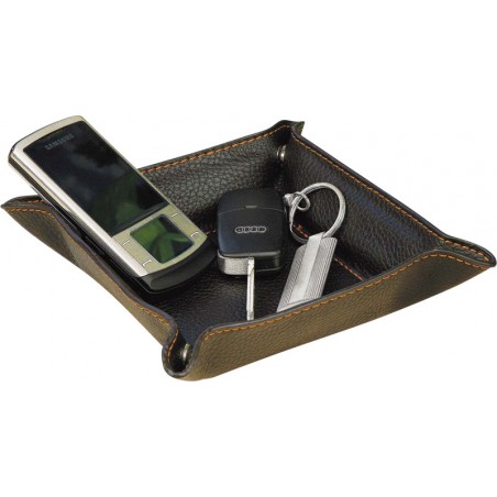 Petit vide-poches WEDO® en similicuir, pour le rangement d'objets personnels, protège la surface des meubles. Dimensions: L 150 x H 35 x P 150 mm.