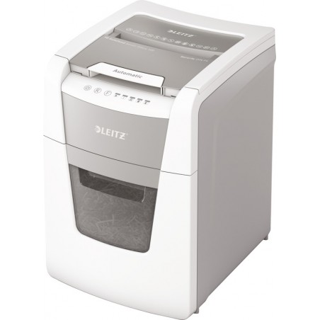 Destructeur de documents LEITZ® IQ Autofeed Small Office 100 P-4 avec réceptacle de 34 l, largeur d'ouverture DIN A4 de 220 mm, niveau de sécurité P-4, détruit jusqu'à 8 feuilles à la fois en alimentation manuelle et jusqu'à 100 feuilles en alimentation automatique, destruction continue pendant 20 min., accepte les agrafes, trombones et cartes de crédit, puissance du moteur: 300 W, fonctionnement ultra-silencieux inférieur à 55 dBA, témoin lumineux pour corbeille pleine, utilisation simple et intuitive avec des touches de commande tactiles, mode veille, se met automatiquement en stand-by après 3 min. d'inactivité, technologie anti-bourrage, marche arrière. Dimensions: L 365 x H 530 x P 430 mm. Poids: 12,5 kg. Garantie: 2 + 1* ans (*après enregistrement). Prix incluant la TAR. Certification: CE, TÜV/GS. coupe croisée 4 x 30 mm