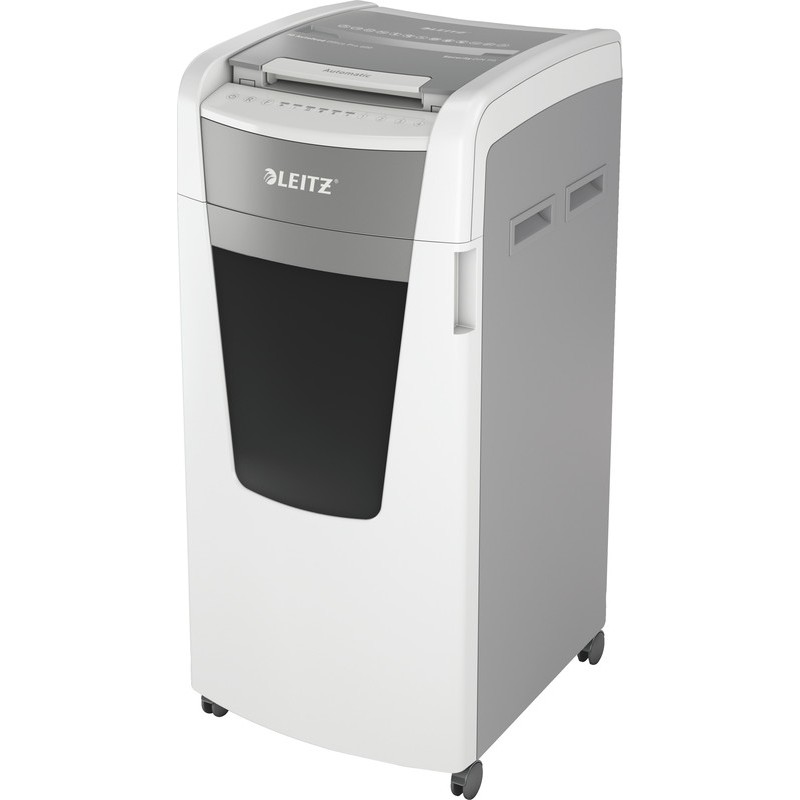 Destructeur de documents LEITZ® IQ Autofeed Office Pro 600 P-5 avec réceptacle escamotable de 110 l, largeur d'ouverture DIN A4 de 223 mm, niveau de sécurité P-5, détruit jusqu'à 10 feuilles à la fois en alimentation manuelle et jusqu'à 600 feuilles en alimentation automatique, destruction continue pendant 4 h, accepte les agrafes, trombones et cartes de crédit, alimentation papier protégée par mot de passe en cas de fonctionnement non surveillé, puissance du moteur: 450 W, fonctionnement ultra-silencieux inférieur à 55 dBA, témoin lumineux pour corbeille pleine, utilisation simple et intuitive avec des touches de commande tactiles, mode veille, se met automatiquement en stand-by après 3 min. d'inactivité, technologie anti-bourrage, marche arrière, facile à déplacer grâce aux 4 roulettes. Dimensions: L 510 x H 960 x P 570 mm. Poids: 46,8 kg. Garantie: 2 + 1* ans (*après enregistrement). Prix incluant la TAR. Certification: CE, TÜV/GS. coupe microparticules 2 x 15 mm