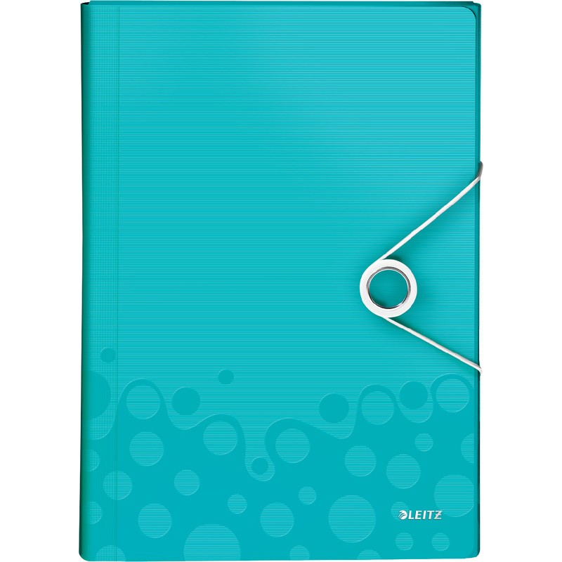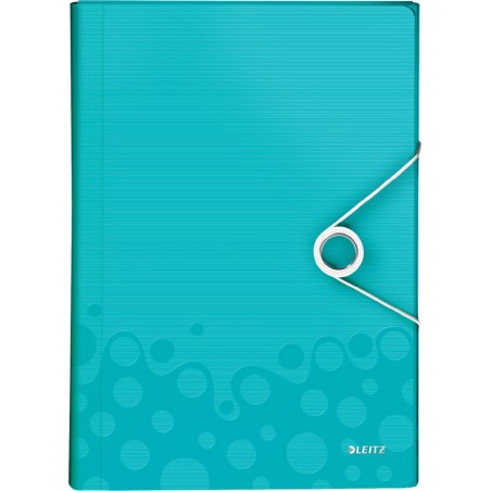 Dossier à compartiments LEITZ® WOW en PP, avec 6 compartiments dont 5 avec des onglets d'indexation, livré avec les étiquettes, compartiment supplémentaire pour petits ustensiles et carnets, poche pour cartes de visite, avec fermeture par élastique, capacité max. 250 feuilles, pour format A4.