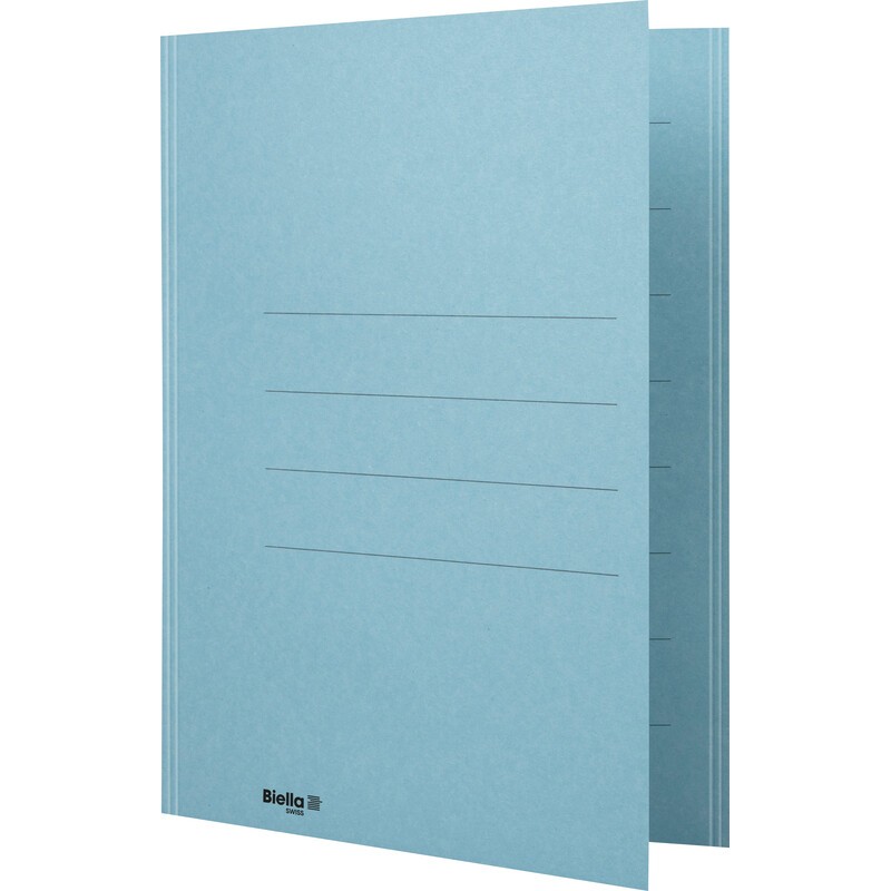 Dossiers à insérer BIELLA avec rabat latéral en carton, 240 g/m2, avec 3 plis, coins arrondis, lignes sur la couverture destinées aux inscriptions, rabat latéral imprimés, volet antérieur raccourci de 10 mm, capacité max. 90 feuilles, format de la couverture 318 x 215/240/118 mm, pour format A4.