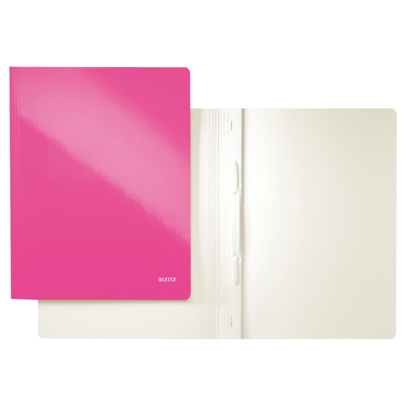 Dossier-classeur LEITZ® WOW chemise de classement attractive déclinée dans des couleurs WOW éclatantes avec effet bicolore, en carton laminé PP 300 g/m2, perforation 8 cm, capacité max. 250 feuilles, pour format A4. Durabilité eco:plus: Certification: FSC.