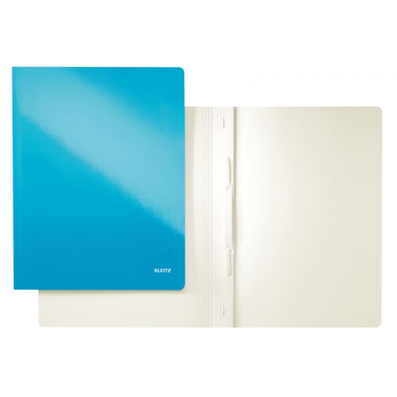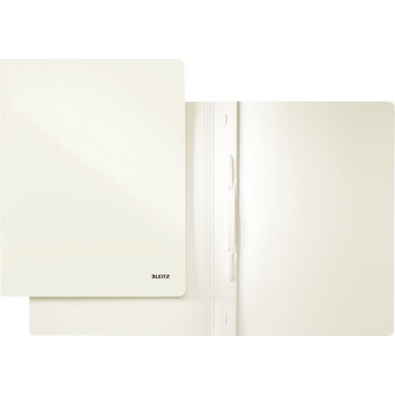 Dossier-classeur BIELLA 6 en carton recyclé, 320 g/m2, pli simple, lignes sur la couverture destinées aux inscriptions, format 254/270 x 318 mm, avec 2 languettes à spirales pour perforation 80 mm et targette à crochets, capacité max. 100 feuilles, pour format A4. Durabilité eco:plus: recyclable. Certification: The Blue Angel.