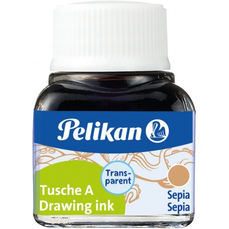 Encre de Chine PELIKAN A pour le bureau, les beaux-arts, l'école et les loisirs, pour dessiner et peindre, ne convient pas pour les tatouages, résiste à l'effaçage et à l'eau, résistante à la lumière, convient particulièrement bien pour tire-ligne, plume à dessin et, pinceau. flacon de 10 ml