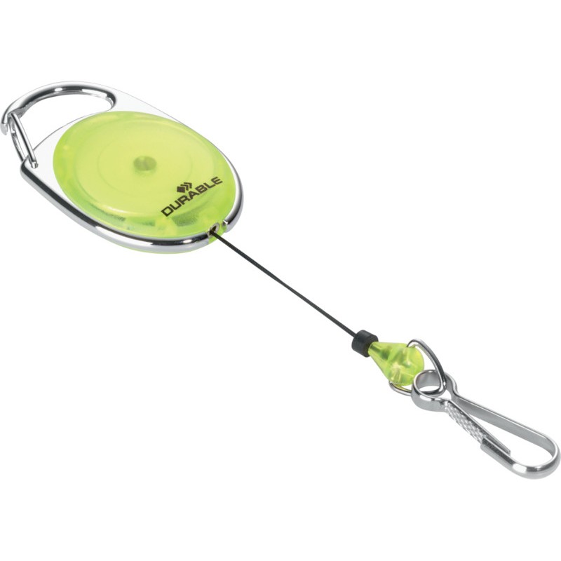 Enrouleur porte-badge DURABLE jojo Style avec clip en métal, longueur du câble 800 mm, facile à combiner avec les badges et porte-badges de sécurité DURABLE équipés d'une perforation pour clip ou d'une épingle. Durabilité eco:plus: recyclable, composant recyclé, teneur en déchets recyclés après utilisation max. 10%. avec accroche en métal