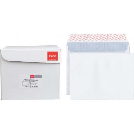 Enveloppes ELCO Documento avec soufflet, blanches kraft blanc, soufflet 20 mm, intérieur gris. Durabilité eco:plus: recyclable. Certification: FSC. C4, avec fermeture autoadhésive Optifix® 324 x 239 mm, façon DNS-HK. Boîte de 200 pièces.