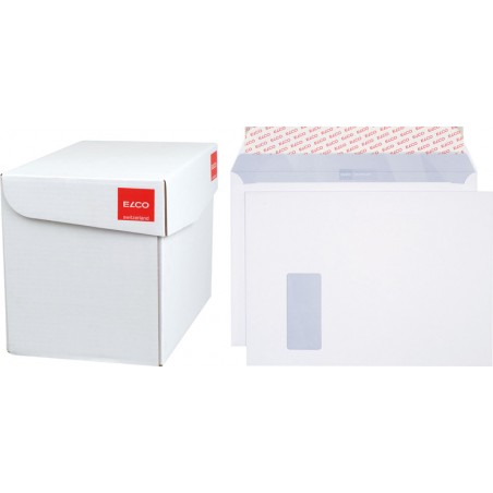 Enveloppes ELCO Premium, emballage de bureau qualité premium extra blanche, sans chlore, intérieur gris, couleur 100% à base d'eau. Durabilité eco:plus: recyclable. Certification: FSC. C4, avec fermeture autoadhésive Optifix® 324 x 229 mm, façon DNG-HK. Boîte de 250 pièces.