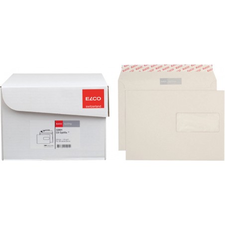 Enveloppes ELCO sycling, emballage de bureau 100% en papier recyclé, grises, excellente opacité. Durabilité eco:plus: recyclable. Certification: The Blue Angel. C5, avec fermeture autoadhésive Optifix® 229 x 162 mm, façon DNG-HK. Boîte de 500 pièces.