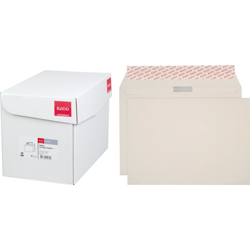 Enveloppes ELCO sycling, emballage de bureau 100% en papier recyclé, grises, excellente opacité. Durabilité eco:plus: recyclable. Certification: The Blue Angel. C4, avec fermeture autoadhésive Optifix® 324 x 229 mm, façon DNG-HK. Boîte de 250 pièces.