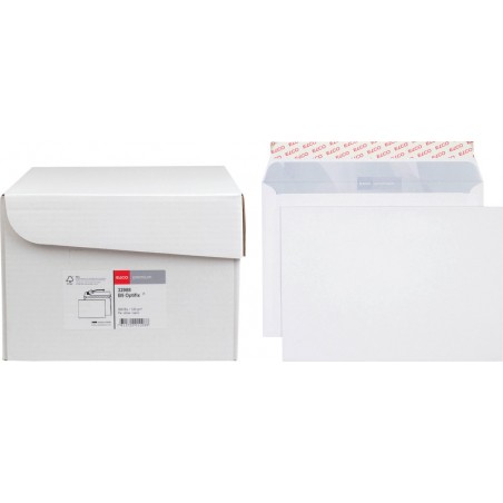 Enveloppes ELCO Premium, emballage de bureau qualité premium extra blanche, sans chlore, intérieur gris, couleur 100% à base d'eau. Durabilité eco:plus: recyclable. Certification: FSC. B5, avec fermeture autoadhésive Optifix® 250 x 176 mm, façon DNG-HK. Boîte de 500 pièces.