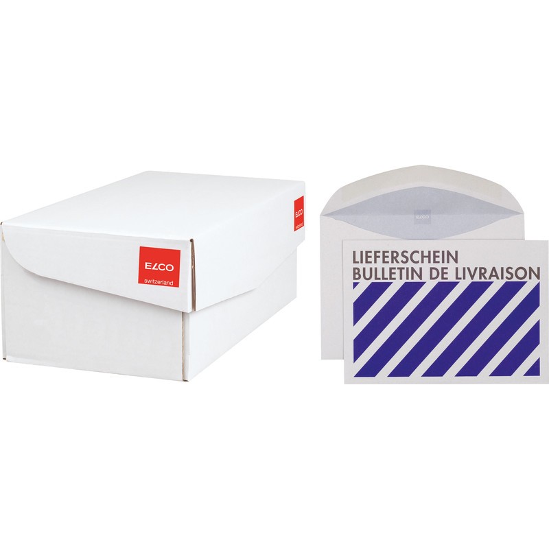 Enveloppes préimprimées ELCO Durabilité eco:plus: recyclable. C6 bulletin de livraison, avec fermeture humide Optimail® 162 x 114 mm, façon DNR, bleu. Boîte de 500 pièces.