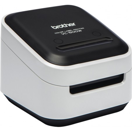 Imprimante d'étiquettes BROTHER VC-500W imprimante d'étiquettes universelle avec connexion réseau et connectivité sans fil, connectable à un ordinateur, un smartphone ou une tablette, technologie d'impression Zink® Zero Ink® pour produire des étiquettes pleine couleur sans utiliser d'encre, résolution 313 ppp, vitesse d'impression jusqu'à 8 mm/sec., largeur d'impression jusqu'à 50 mm, dispositif de coupe intégré pour créer des étiquettes de la longueur souhaitée. Livrée avec 1 rouleau 25 mm x 5 m blanc (CZ-1004), 1 cassette de nettoyage (CK-1000), câbles USB et d'alimentation. Configuration requise: Windows® 7, 8, 8.1 et 10; Mac OS X v. 10.11.x, 10.12.x, 10.13.x. Dimensions: L 113 x H 96 x P 116 mm. Poids: env. 660 g. Prix incluant la TAR.