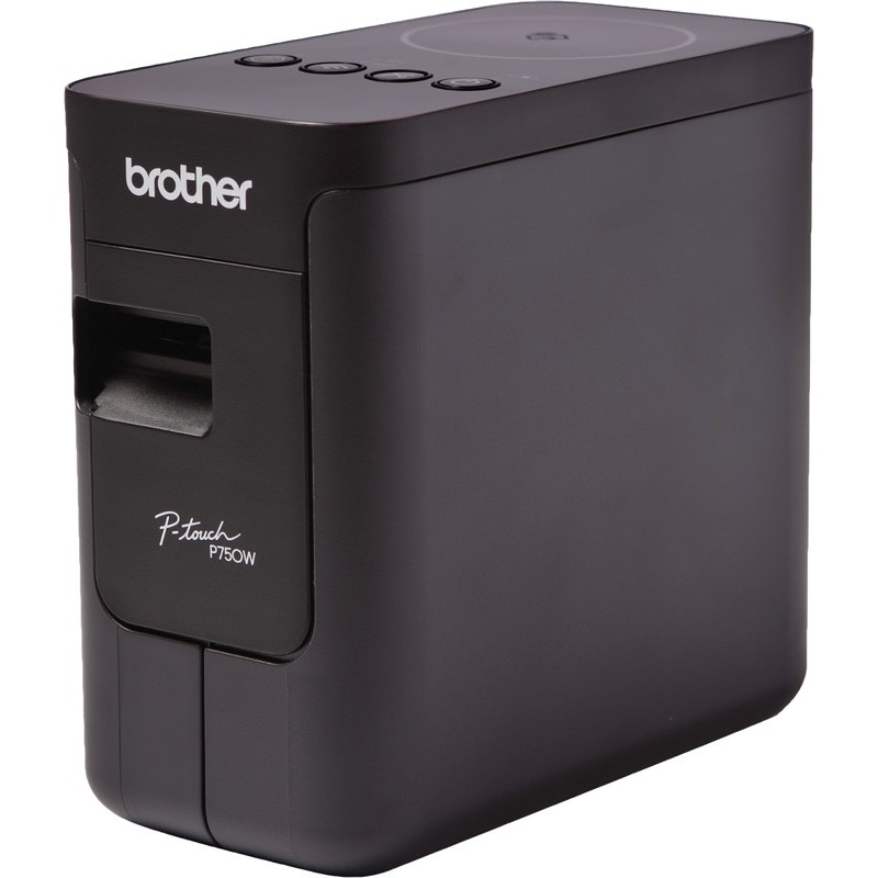 BROTHER® P-touch® P750W étiqueteuse universelle, connectable à un ordinateur, interface USB et WLAN, NFC, résolution 180 ppp, vitesse d'impression jusqu'à 30 mm/sec., rubans dans les largeurs 3,5, 6, 9, 12, 18 et 24 mm, découpe automatique du ruban. Livrée avec adaptateur secteur, ruban 24 mm x 4 m blanc/noir (TZe-251) et câble USB. Alimentation: adaptateur secteur. Configuration requise: Windows® Vista, 7 et 8. Dimensions: L 78 x H 143 x P 152 mm. Poids: env. 800 g. Prix incluant la TAR.